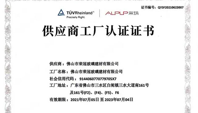 喜訊 | 榮冠公司通過采筑TüV萊茵供應商工廠認證